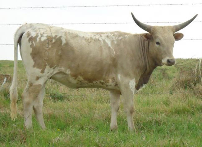 | Sold ** Thank you Donald H. & Richard H. ** Sold This young lady is a ranch favorite. She runs to you to be petted and rubbed. Sarah Jane`s sire is our big bodied herd sire, D-H Sombra de Nuez, which has been putting on size to his offspring. This heifer`s dam is a Jet Fire daughter that gives her all to every one of her calves. All of her calves have been big bodied, very friendly, and interestingly colored. Sarah Jane`s horns are coming out thick and dark. It`ll be interesting to see what they do. Photo taken 03/24/2011. |
