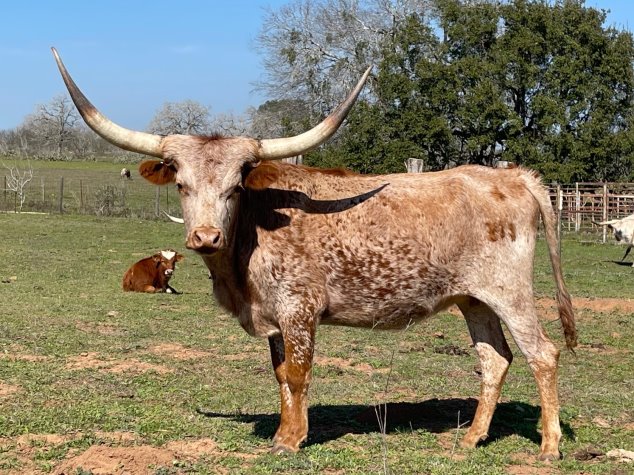 | SOLD! Thank you Hooks/Byers. Beautiful roan cow out of the Trinity son, LAER Louisiana Man, who goes back to some of the best Creek Plantation breeding out there. Crossed on Terry`s best foundation cattle. Just take a look at her beautiful dam, Abilene. Has a flashy bull calf at side and exposed back to Range Boss for another flashy calf. |
